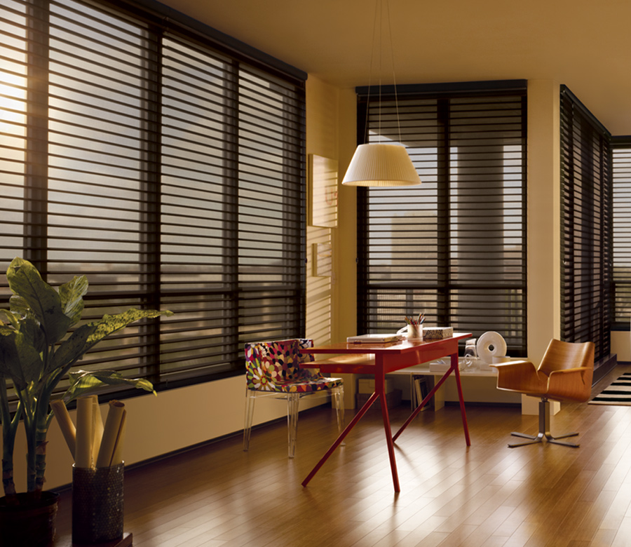 And we agree. If you already love the idea of Silhouette Sheer Shades and their range of light control, soft glowing light and ability to view-thru or add protection, listen up. Our Dual shades can add one more level of control-some serious room darkening. A secondary blackout roller shade is built into the head rail ready to engage at any moment. The Silhouette sheer shade and dual shade work independently allowing for complete control of your atmosphere.